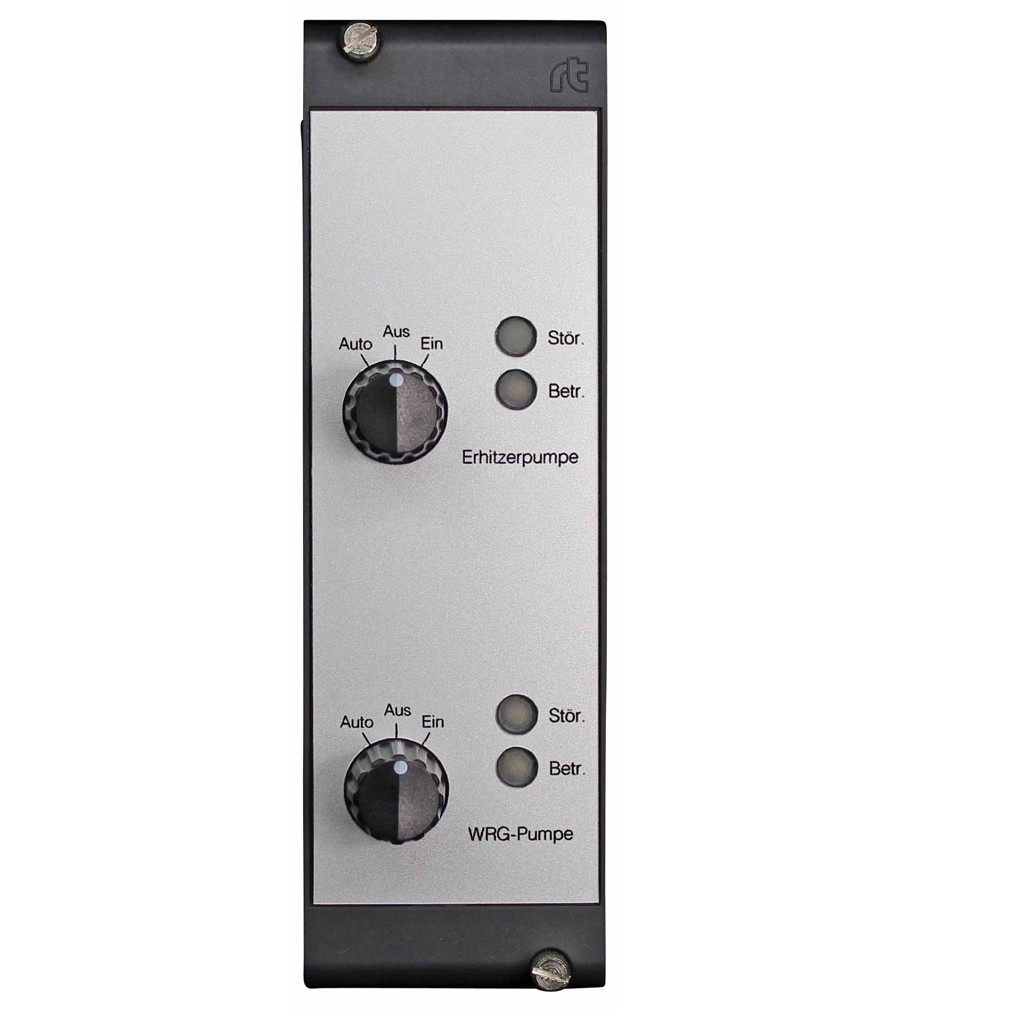 Hand-/Vorrangbedienebene zur Ansteuerung von zwei 1-stufigen Antrieben in 19″-Modultechnik zur Übersteuerung von Digitalausgängen eines Reglers bzw. DDC-Systems durch Handeingriff bestehend aus: