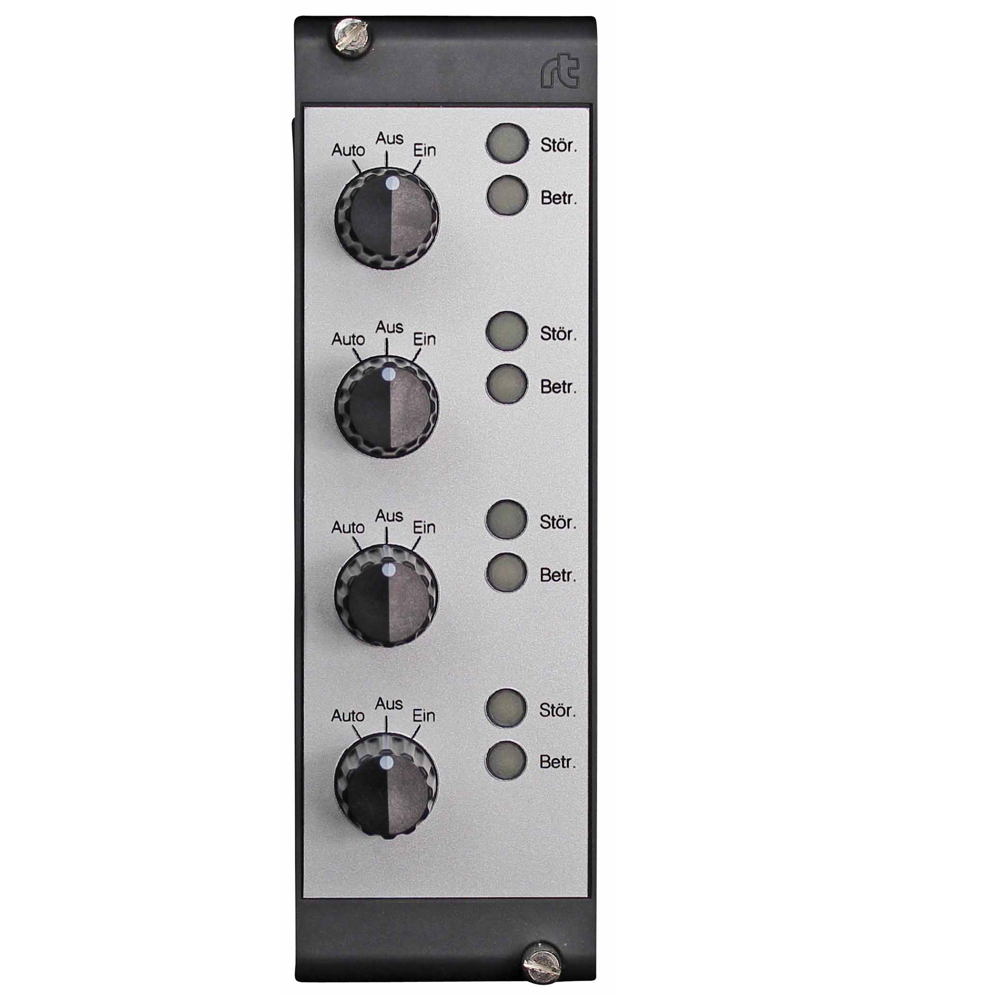 Hand-/Vorrangbedienebene zur Ansteuerung von vier 1-stufigen Antrieben in 19″-Modultechnik zur Übersteuerung von Digitalausgängen eines Reglers bzw. DDC-Systems durch Handeingriff bestehend aus: